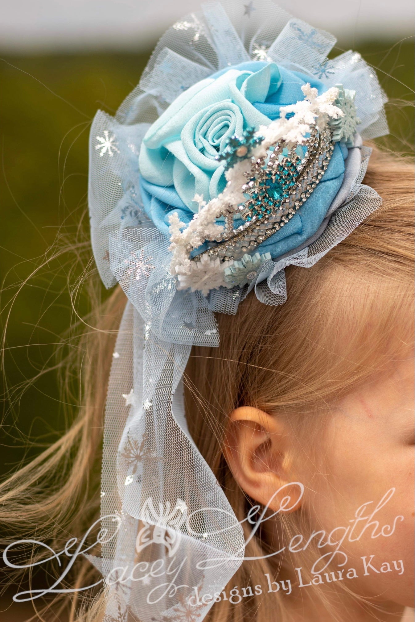 Each one is inspired by our favorite Disney Princesses! These stunning Hairblooms are made of multi-color satin fabric, topped with coordinating add-ons for each princess, including a tiara, feathers, color match ribbon, etc. Everything about these are so elegant and screams "Beauty" perfect for that Princess!!!